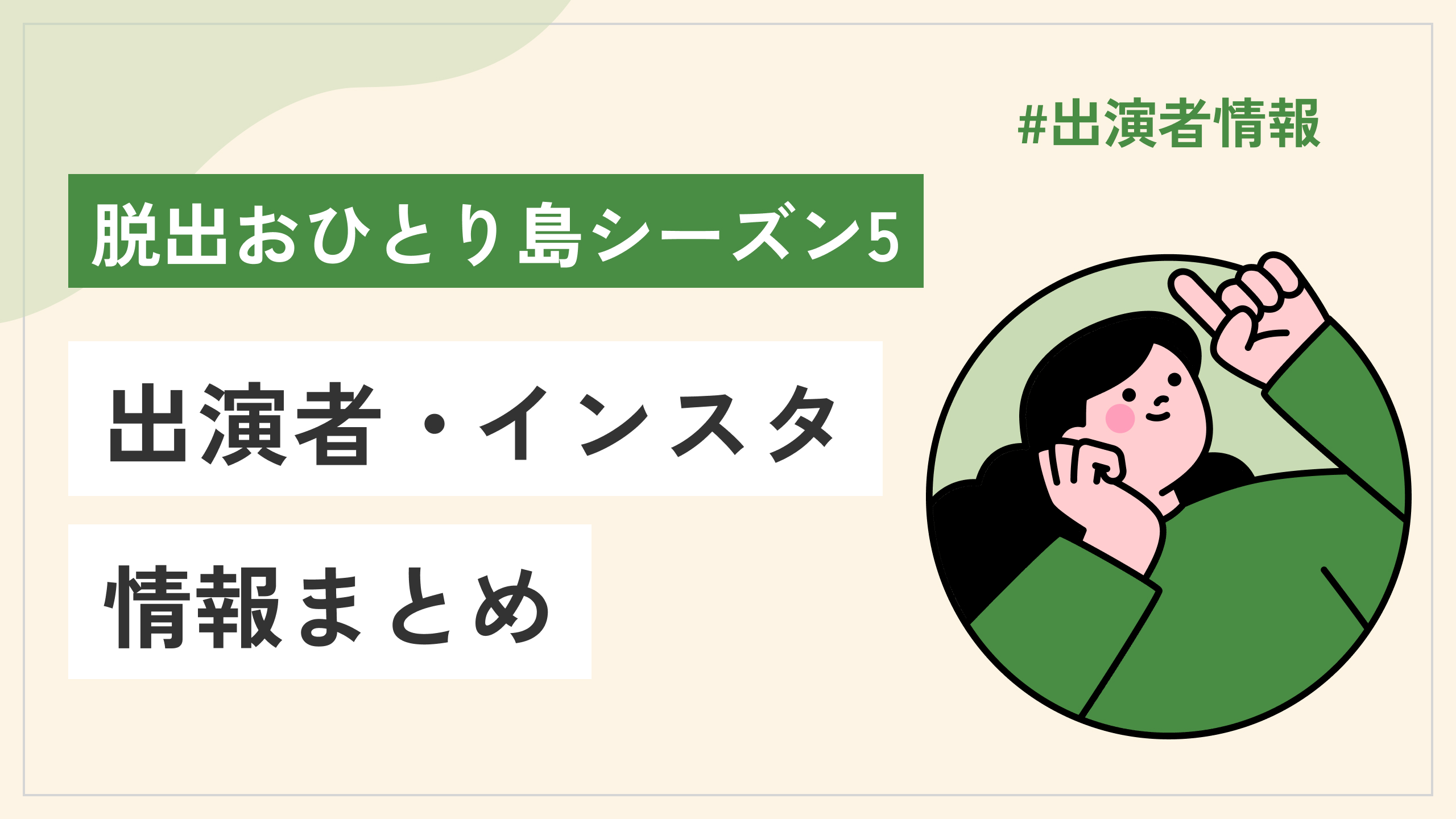以上、Netflix「脱出おひとり島」シーズン5の参加者について、情報をまとめました。
